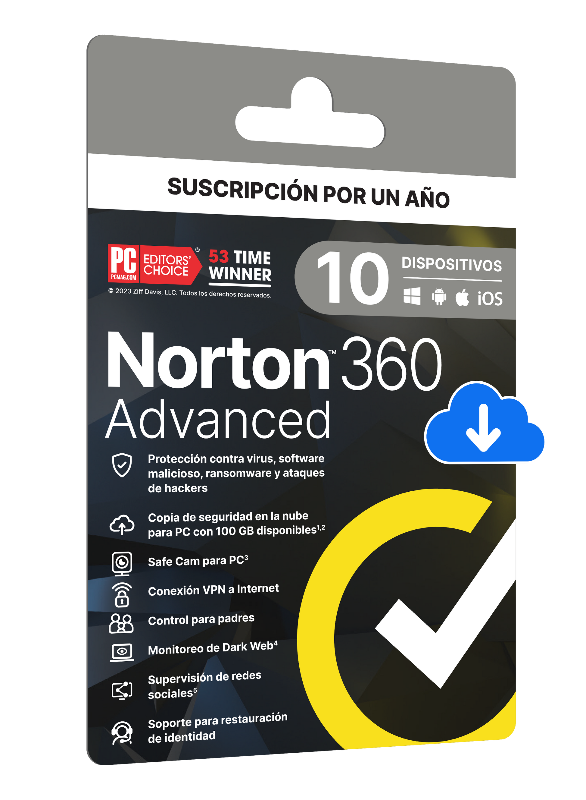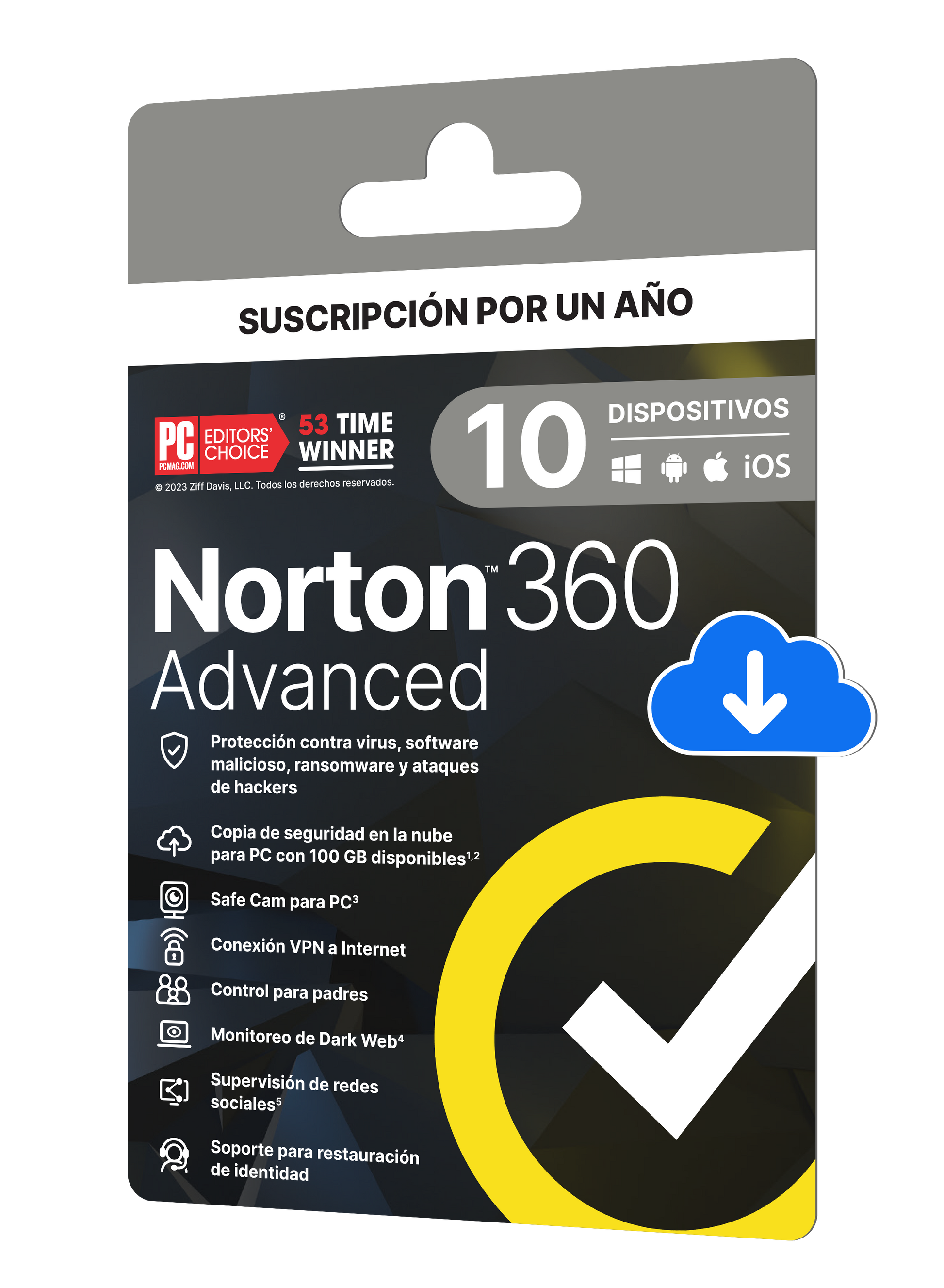 - Norton ESD para 3 o 5 dispositivos, compatible con Windows, Mac, Android y iOS